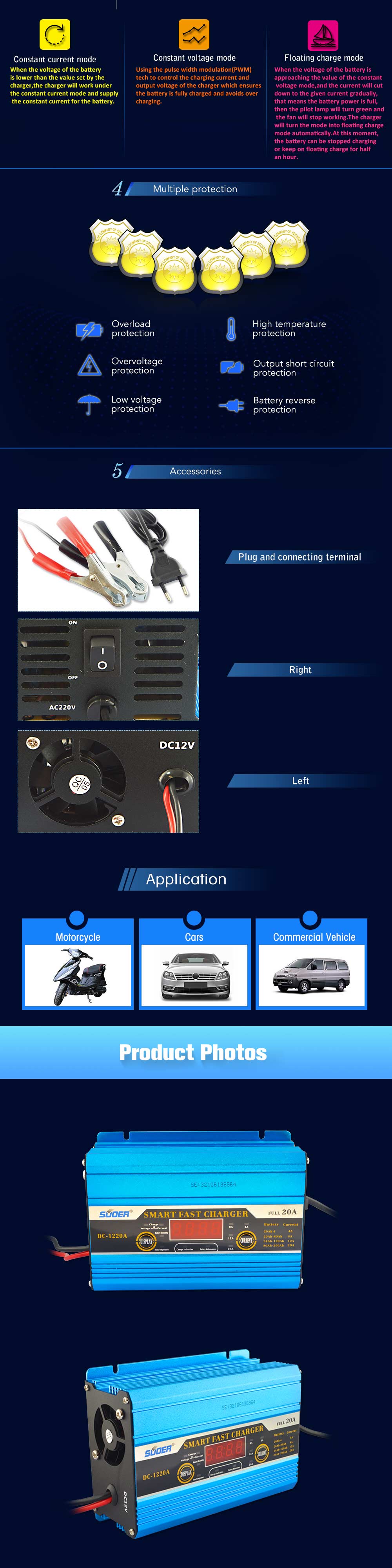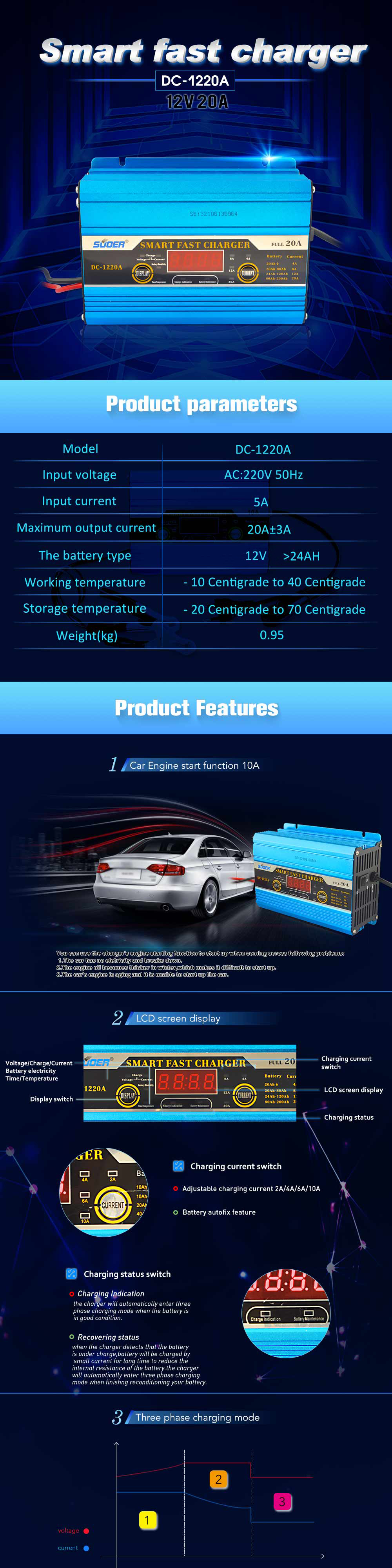Suoer 20A 12V Lead Acid Car Battery Charger (DC-1220A)
