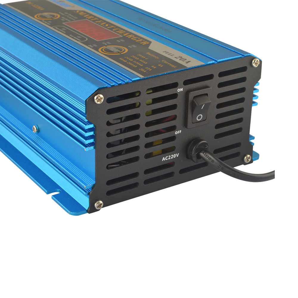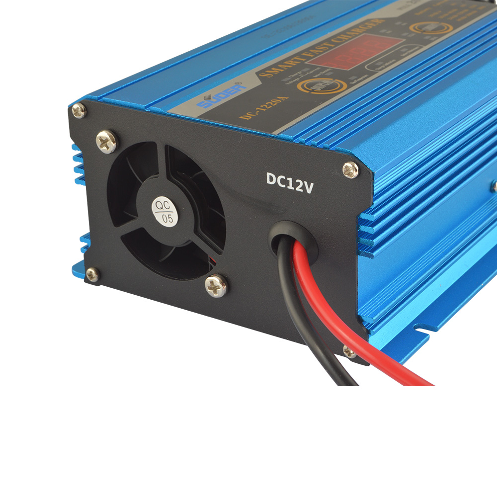 Battery Charger have 10-second car engine start function and temperature control fan,when MCU detect the charger’s temperature more than 45 degrees will open the fan until below to 35 degrees.Can choose charging current,4A,8A,12A,20A.Also have auto stop when full recharge function.