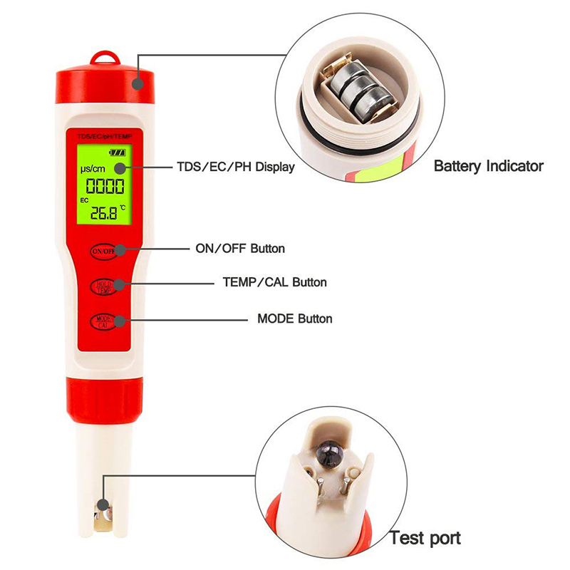 4 in 1 Multi-parameter pH meter digital TDS/EC/Temperature/pH Tetser