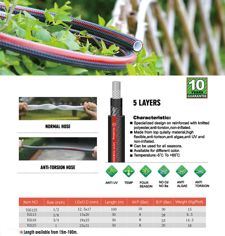 Anti-Torsion PVC Garden Hose 5 LAYERS 1/2″