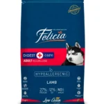 Felicia® Adult Lamb is a special food for sensitive adult dogs. It is formulated to meet all special needs of adult large breeds and to improve their living standards by blending the optimum protein from real lamb and the rich ingredient of anchovy. Because large breed dogs are prone to joint problems, Felicia® Adult Lamb is enriched with a high proportion of glucosamine and chondroitin. In addition, the combination of Omega 3 & 6 natural fatty acids in its composition contributes to the formation of vibrant, silky and shiny hair while supporting the protection of healthy skin.