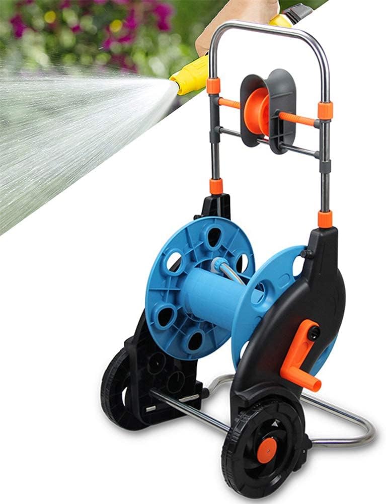 Water Hose Reel Cart with Wheels, Hose Cart with Foldable Handle, Anti-Drip Device, 2 Wheels Water Hose Storage for Garden Yard, Holds 50m of 1/2″